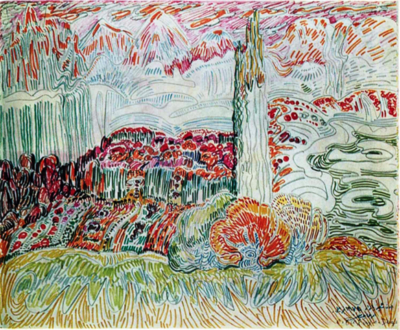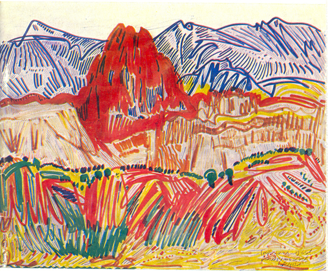 “Mənzərə” 43 x 52 sm, kağız, rəngli flomaster, sulu boya, 1965