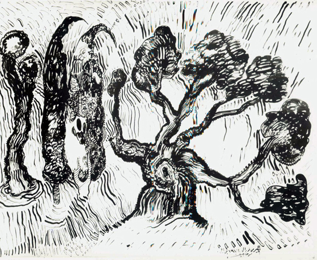 Üç qovaq və tut ağacı, kağız, qara mürəkkəb, 45 x 56 sm, 1974