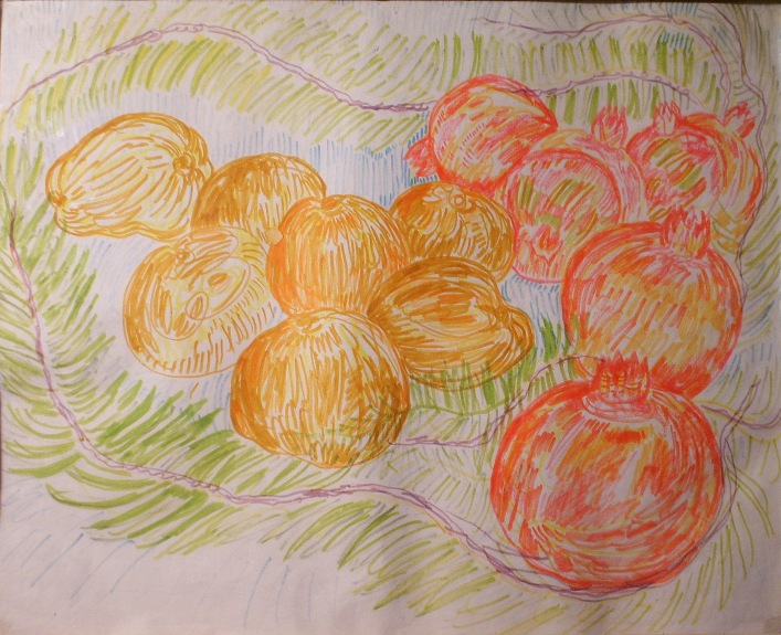 “Narlar və heyva” 45 x 56 sm, kağız, rəngli flomaster