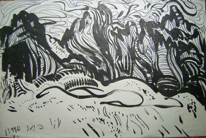 “Şahnabad dağları” 62 x 94 sm, kağız, qara tuş, 1960-cı illər